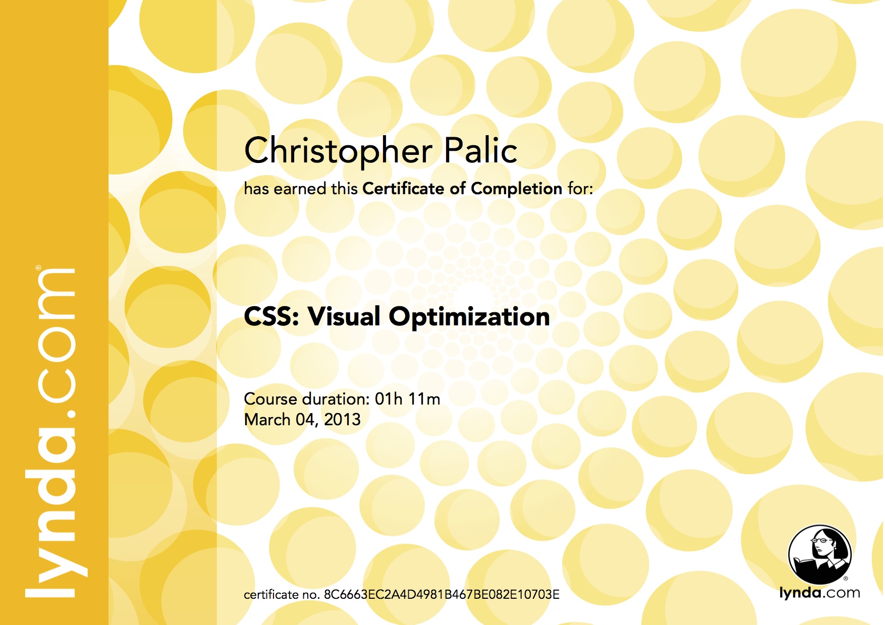 CSS_VisualOptimization_CertificateOfCompletion May 25, 2014 1754 × 1239 CSS_VisualOptimization_CertificateOfCompletion